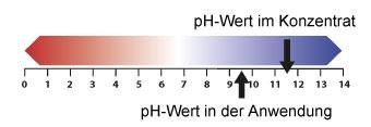 Eine Wassertemperatur bis 60 C erhöht die Reinigungskraft. Bei der Arbeit wird das Tragen von Handschuhen empfohlen. Gereinigte Flächen gründlich mit klarem Wasser nachspülen.